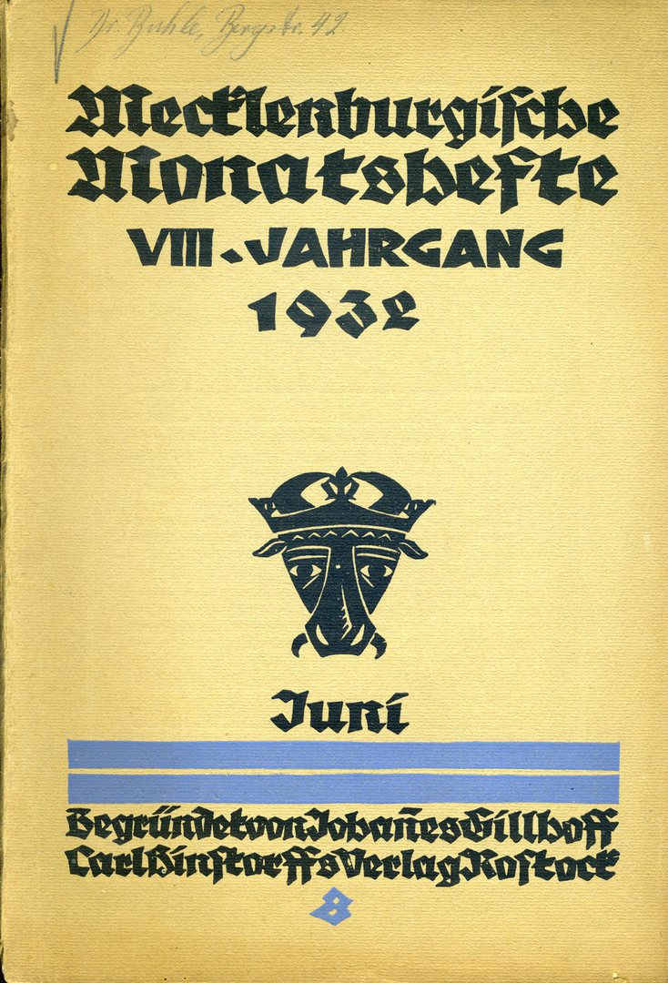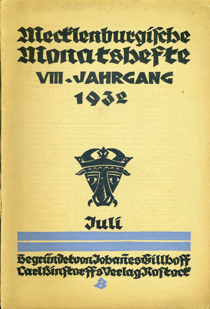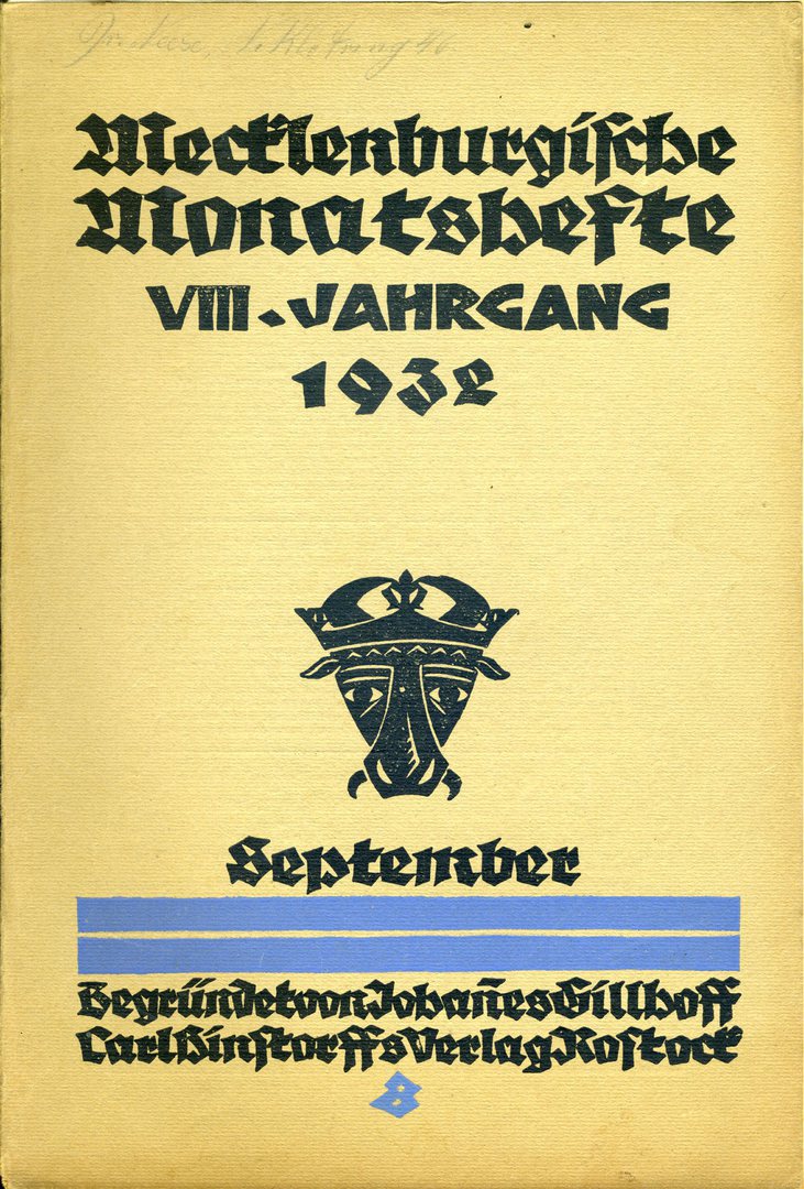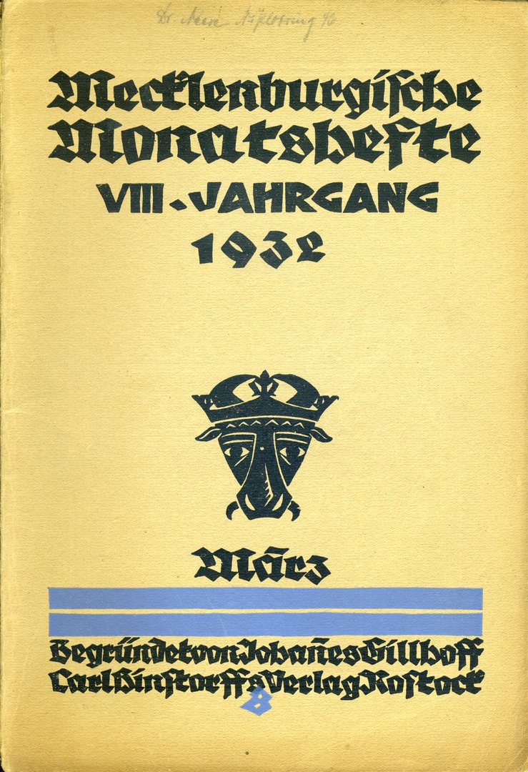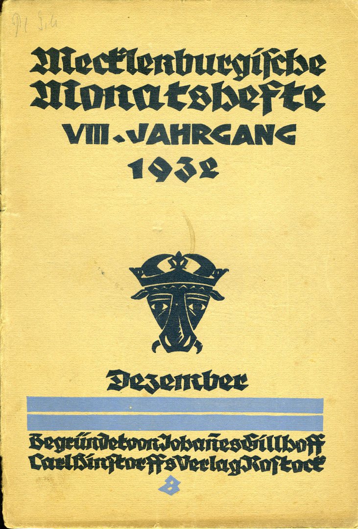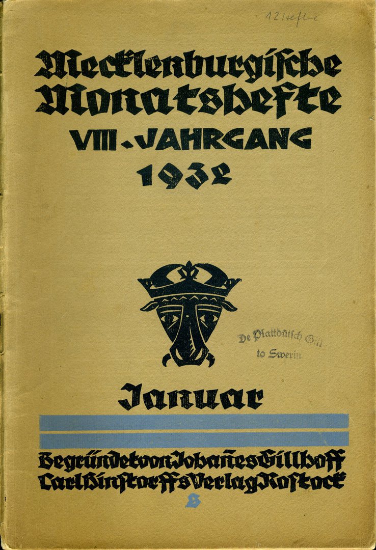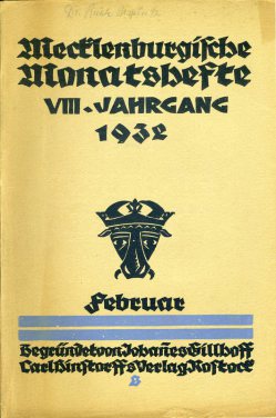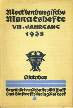 Mecklenburgische Monatshefte. Begründet von Johannes Gillhoff, 8. Jahrgang, Januar 1932, 1. Heft, Rostock, Hinstorff 1932, S. 50.