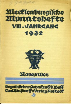 Mecklenburgische Monatshefte. Begründet von Johannes Gillhoff, 8. Jahrgang, November 1932, 11. Heft, Rostock, Hinstorff 1932, S. 501-552.