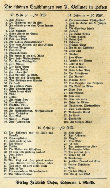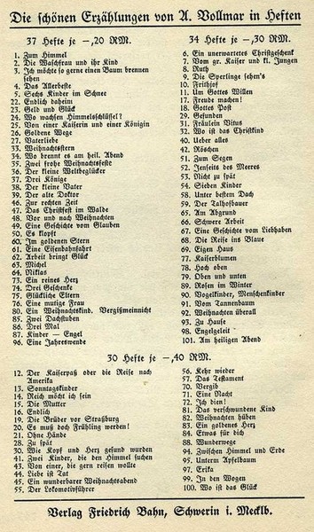 Vollmar, A(gnes): Das Pfarrhaus in Indien. Erzählung, Schwerin, Verlag Friedrich Bahn, 21. Aufl., S. 243.